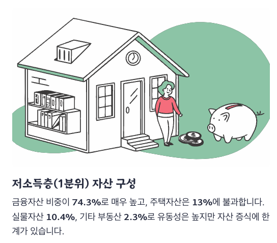 소득 수준에 따라 자산 구성은 극명하게 달라집니다.