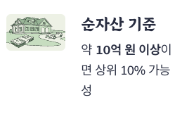 ✅ 순자산 기준: 약 10억 원 이상이면 상위 10% 가능성